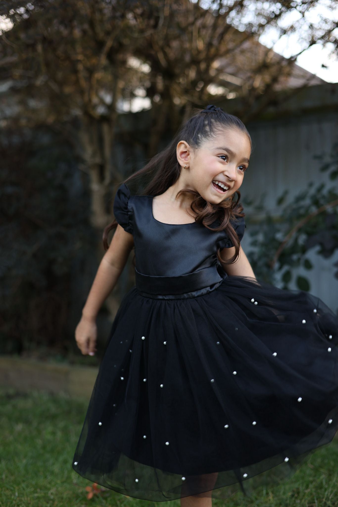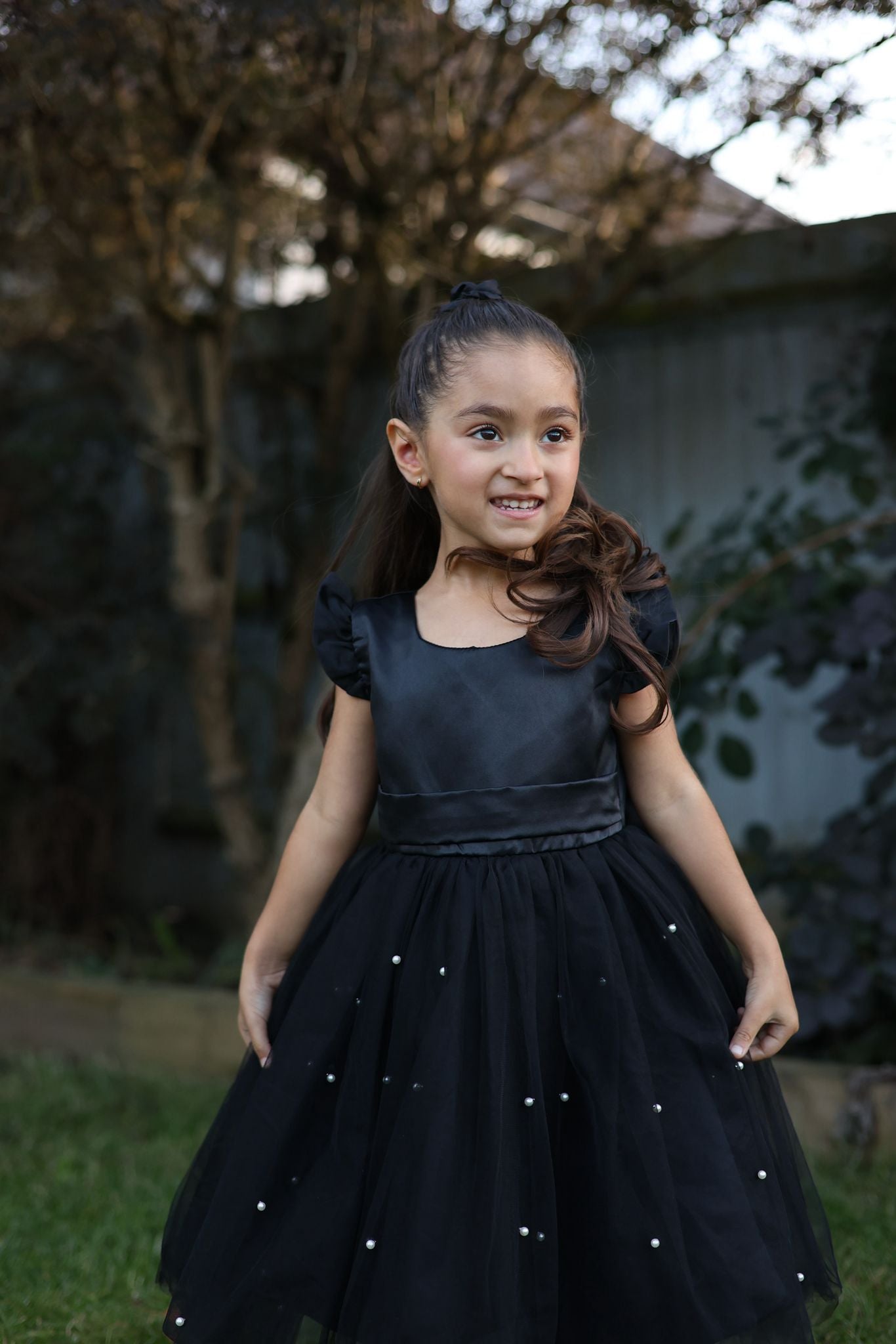 Make your little one feel like a princess in the Black Swan Party Dress! With its playful flare sleeves and sweet bowknot detail, this dress blends comfort and charm perfectly. The soft tulle fabric offers a dreamy, twirl-worthy feel, ideal for any function. Lightweight and graceful, it lets her move freely while looking absolutely magical.